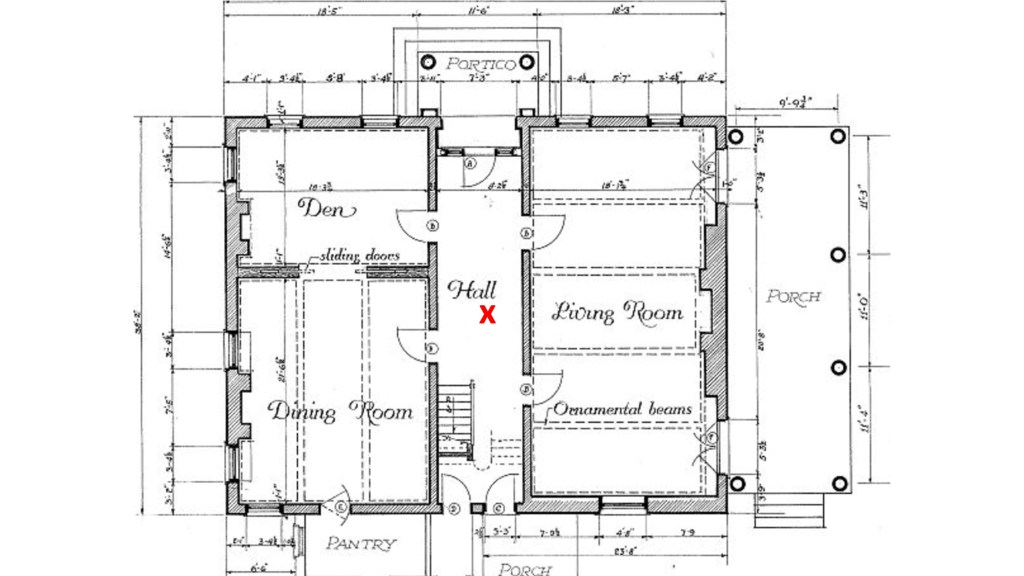 You can see the spot where they performed their ritual on this floor plan of the house. Here, I’ll pass it around. It’s where the red X is.